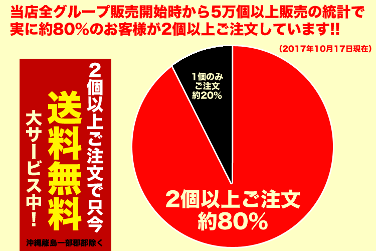 ※ 特典条件のご確認 ※ 【送料無料】の条件 ⇒同一配送先に2個以上注文が対象 ※ご注文時とご注文後の自動配信メールではシステム上送料が加算されますが、 後日当店側で送料を修正し、お客様へご確認メールを配信いたします。